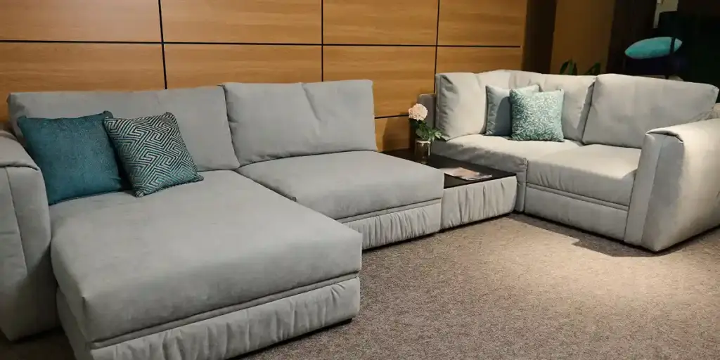 Moderne modulaire bank, waarvan u zelf de configuratie kunt wijzigen. Elk element is een afzonderlijke blok die kan worden verplaatst. Hoge zitpositie, stevige constructie, vulling – PU-schuim met memory-effect. Kies zelf de kleur en stof. Geschikt voor grote woonkamers of open ruimtes.